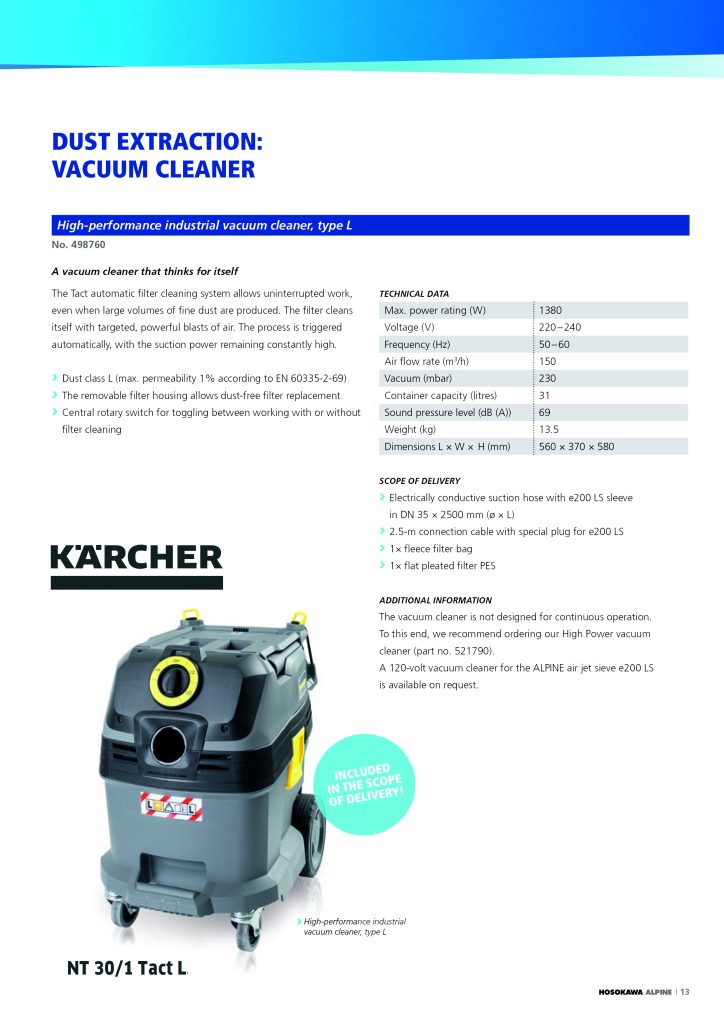 เครื่องดูฝุ่น ยี่ห้อ KARCHER รุ่นนี้ ถูดคัดเลือกมาใช้กับเครื่อง Air sizer e200LS สำหรับปีปัจจุบัน แทนที่ยี่ห้อ Nilfish ด้วยประสิธิภาพที่เหนือ และแรงดูดสม่ำเสมอกว่า อีกทั้งมีระบบกรองฝุ่น หลายชั้น เป็นการช่วยถนอมเครื่อง Air jet e200LS ให้ใช้งานได้ดีขึ้น