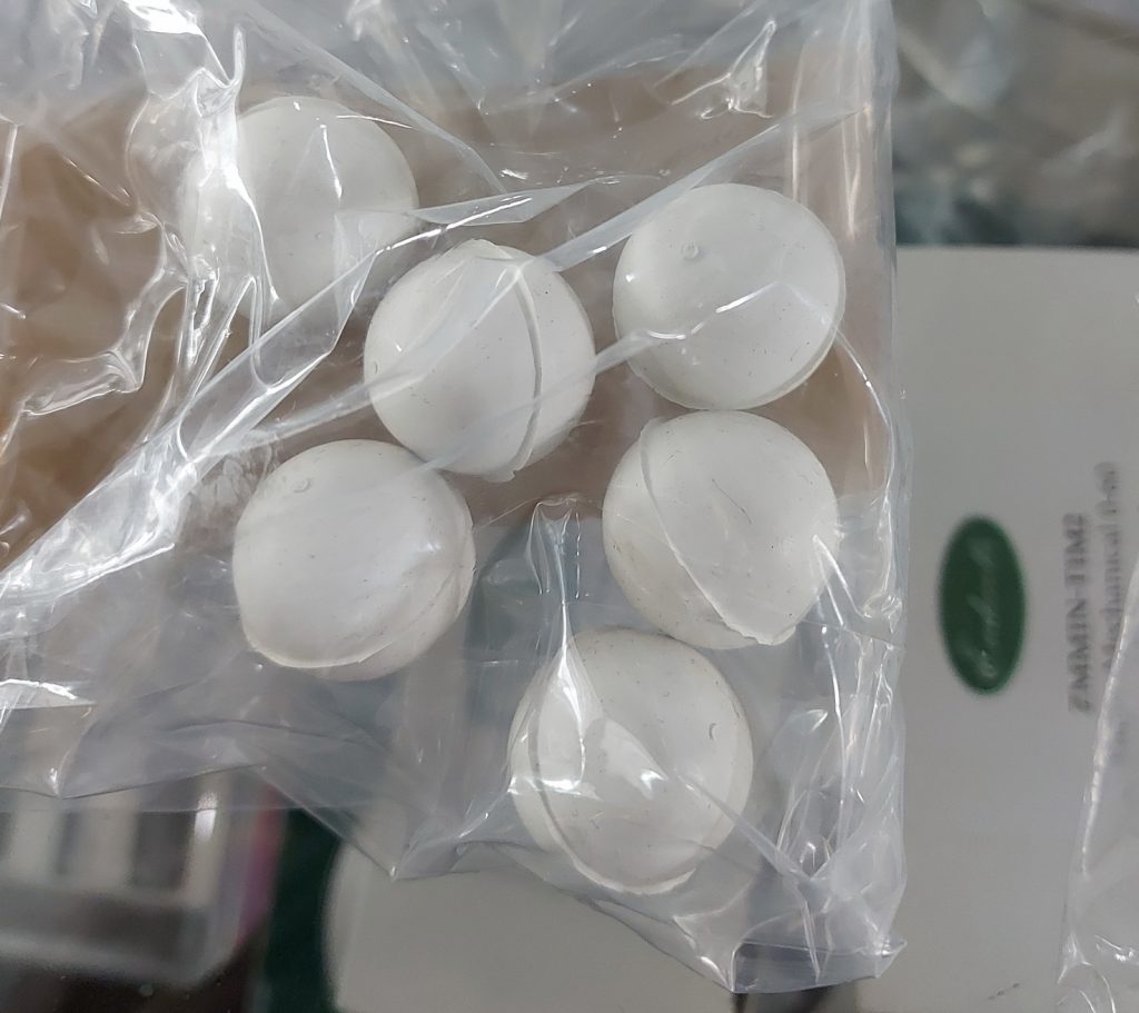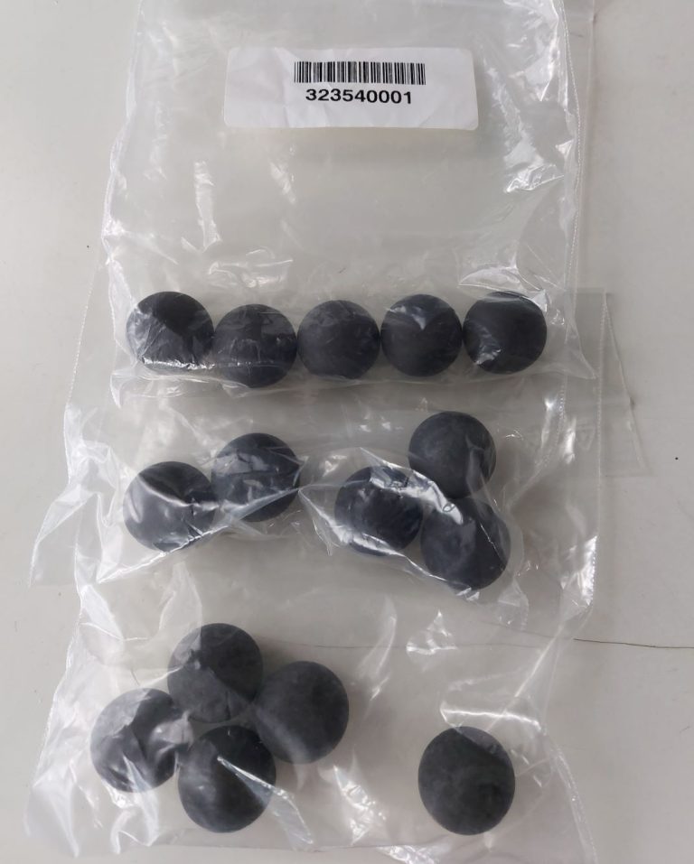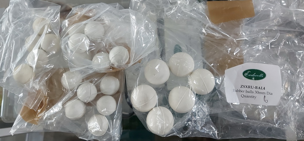 Rubber sieve balls, used to improve the sieving of cohesive material.