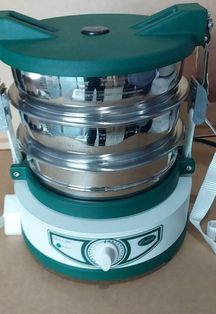 เครื่องเขย่าขนาดกลาง, สำหรับใช้กับตะแกรงร่อน มาตรฐาน เส้นผ่าศูนย์กลาง 8 นิ้ว และ 200 มม และ 100 มม. ขนาดกระทัดรัด พกพาได้สะดวกเป็นรุ่น Analog ที่ทนทานมาก